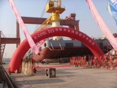 自重4500T的COSL223在旅顺滨海利用船舶下水气囊成功下水,由于场地原因进行了多次转向、移位顺利完成合拢、下水任务。